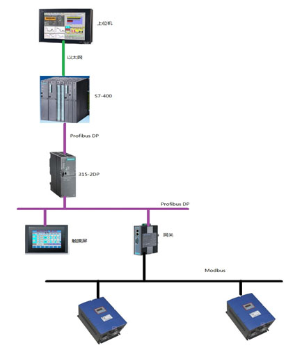 原系统使用的是HONEYWELL的PLC,控制国产的某调功器加热,控制柜就放在了分解炉的边上,温度非常高,所有的操作都是在本地,且没有上位机,没有数据采集及监控。经过改造后,控制柜放到了电气室,本地增加了触摸屏用以操作设备,PLC通过通讯控制调功器运行,并且把温度、露点、阀门状态等数据传到了中央控制室,方便操作人员观察。